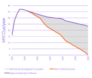 Chart showing how the aviation industry could reach net-zero emissions by 2050 by using greenhouse gas removal technology.